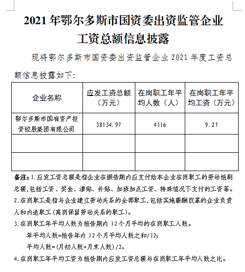 2021年鄂爾多斯市國資委出資監(jiān)管企業(yè) 工資總額信息披露
