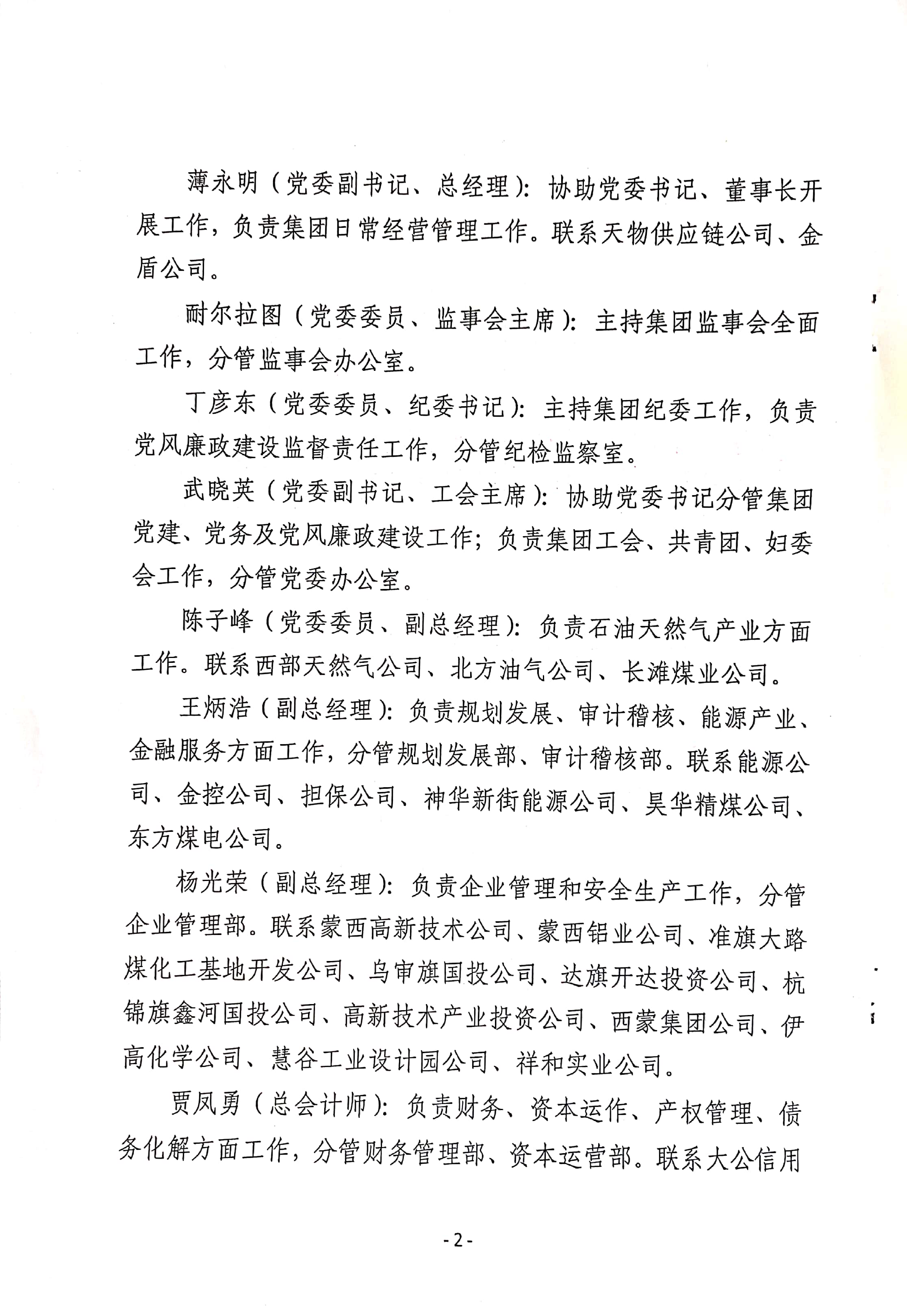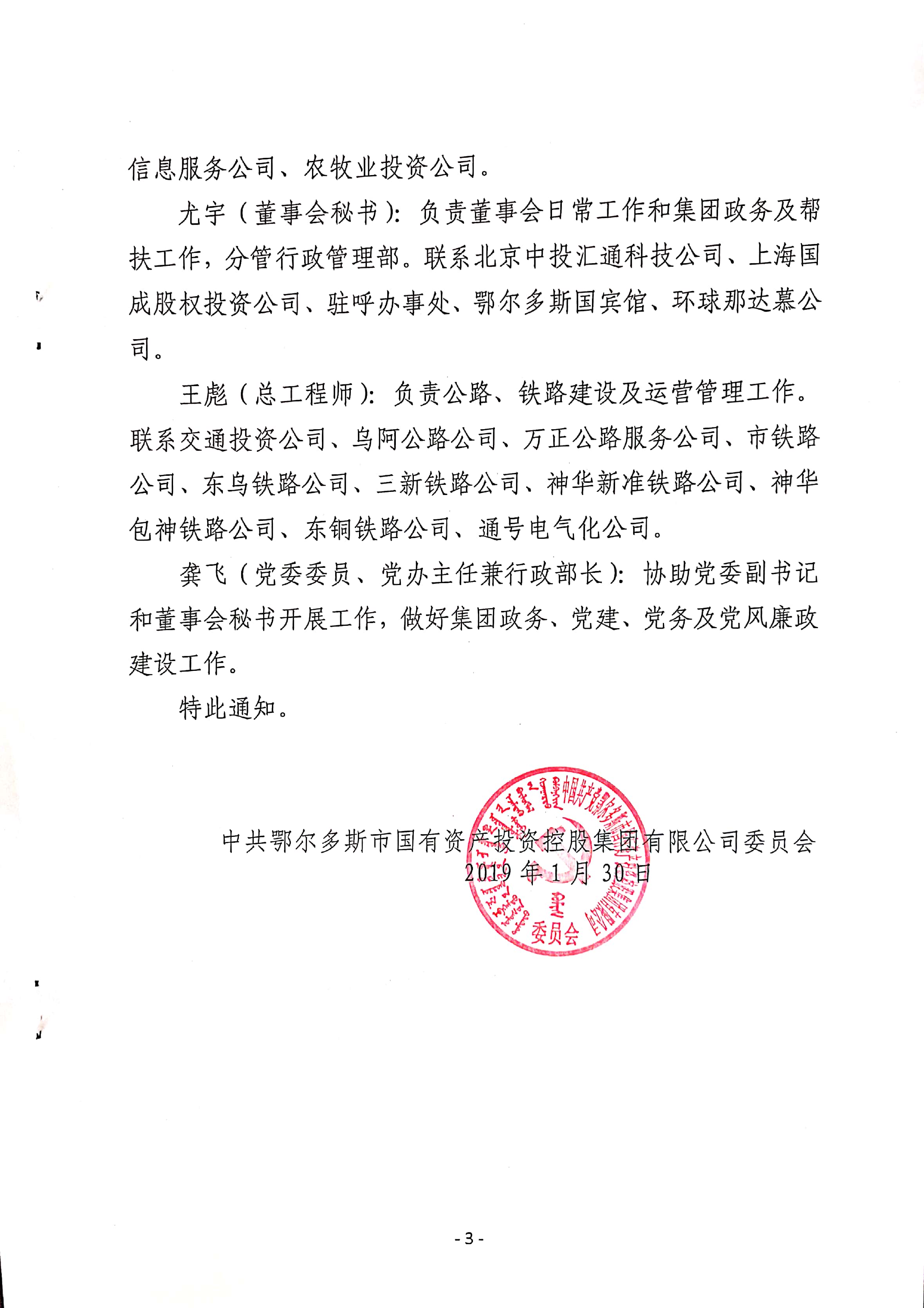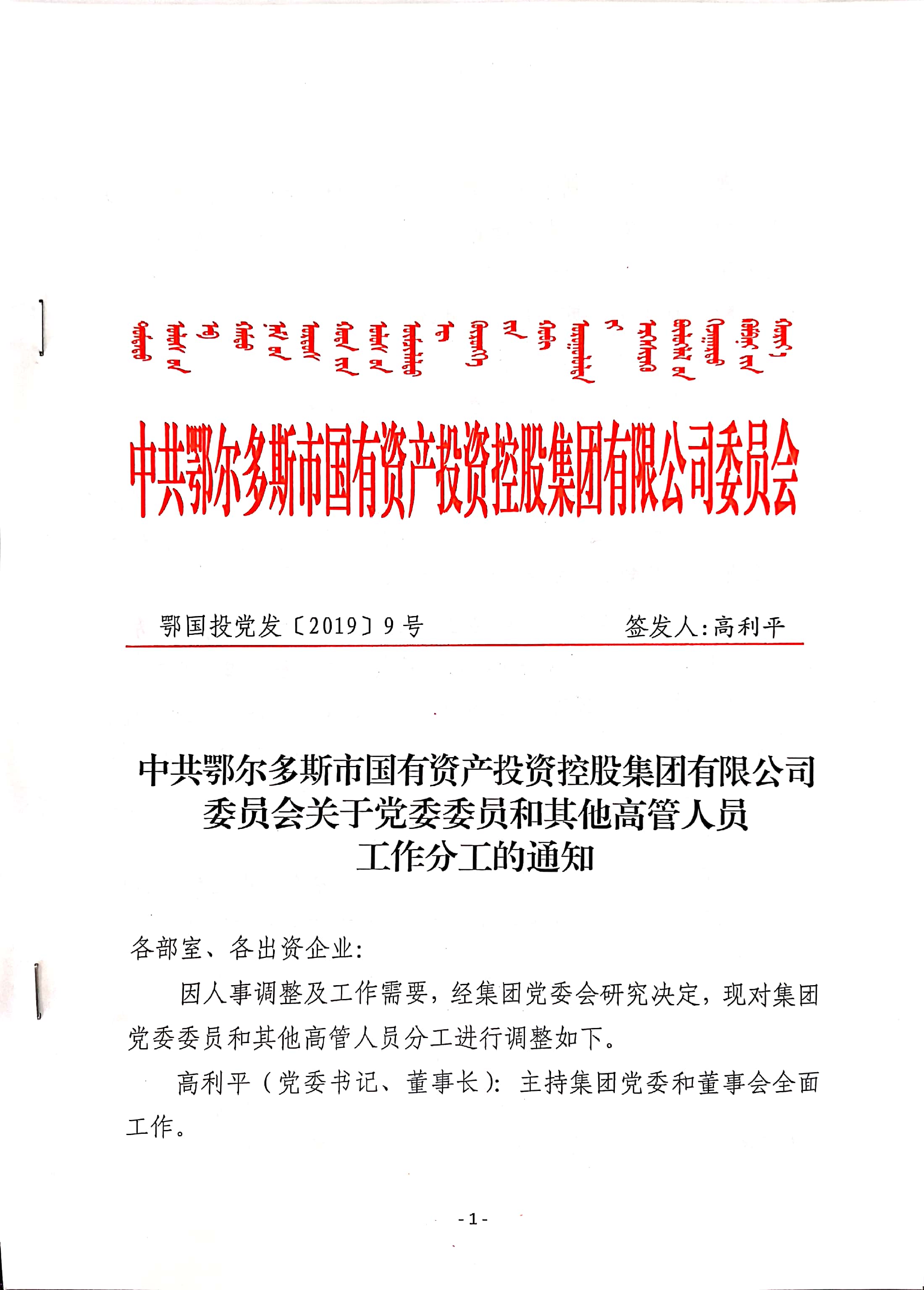 中共鄂爾多斯市國有資產(chǎn)投資控股集團(tuán)有限公司委員會 關(guān)于黨委委員和其他高管人員工作分工的通知